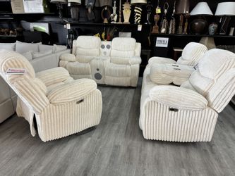 Cream Corduroy Power Reclining Sofa Loveseat And Chair $10No Fort Myers, FL