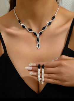 Women's Black Crystal Necklace And Earrings Set, Jewelry$10Auburn, WA