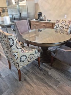 Solid Wood Dining Table With Beautiful Glass And Four Custom Designer Chairs$450Queen Creek, AZ