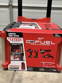 Milwaukee M18 FUEL 4-Tool Combo Kit With Wheeled Pack Out Tool Box$1,000Long Beach, CA