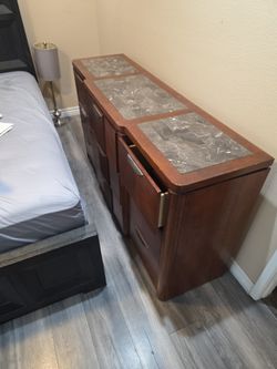 Very nice dresser, with 2 nightstands. Matching the dresser has 9 drawers. The nightstands have