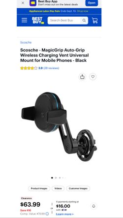 Scosche MGQVP-XTET MagicGrip FreeFlow Autogrip Wireless Charging Vent Phone Mount for Car in Black $22Palmdale, CA