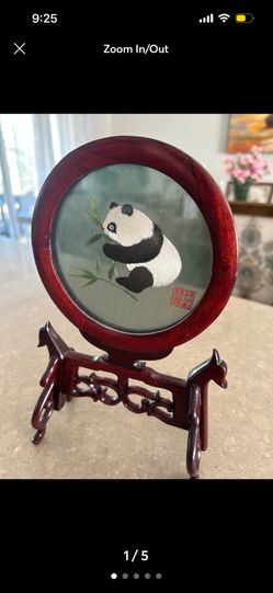Vintage Chinese Art Double-Sided Suzhou Silk Embroidery Panda w/ Rosewood Stand$25Denver, CO