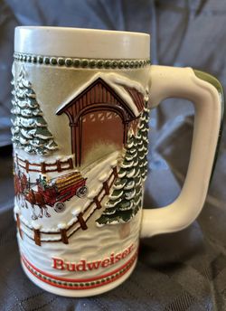 Budweiser Beer Holiday Christmas Stein Mug. Clydesdales by Ceramarte Snowy Bridge.$10Phoenix, AZ
