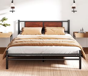King Bed Frame with Rustic Wood Headboard and Metal Platform$99Los Angeles, CA