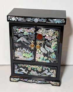 Vintage Asian Black Lacquer Jewelry Box-inlaid Mother of Pearl 12 Inch High$50Lynnwood, WA