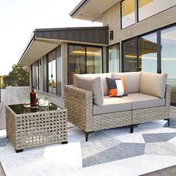 New OVIOS Supery Gray 3-Piece Wicker Patio Conversation Set with Beige Cushions and Coffee Table$275Los Angeles, CA