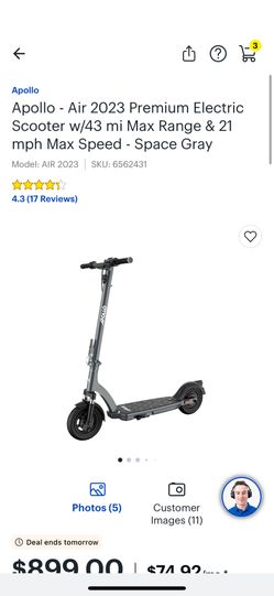 Apollo Air 2023 Premium Electric Scooter W/ 43 Mile Max Range & 21 Mph Max Speed - Space Gray $700Seattle, WA