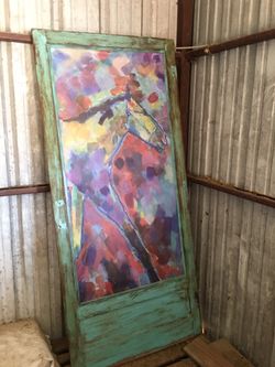 Foal In Action , Custom Paint Wood Screen Door $275Tioga, TX