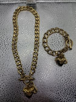 Vtg Y2K Juicy Couture Gold Tone Puffy Heart Dangle Charm Chunky Necklace Bracket$70Bakersfield, CA