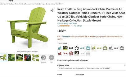 Adirondack Weather Resin Classic Chair$150Edison, NJ