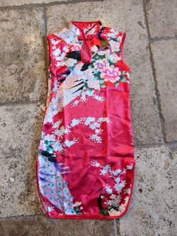 Kid Girl Chinese Chongsam Qipao Dress Sleeveless Satin Floral Peacock US 6/7$15Newport Beach, CA