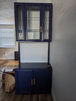 Display Cabinet Wood/glass Blue And Gold$35Holiday, FL