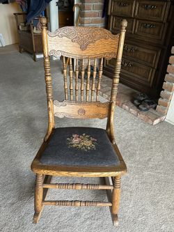 Antique Press back Ladies Oak Rocker With Needlepoint Seat$65San Marcos, CA