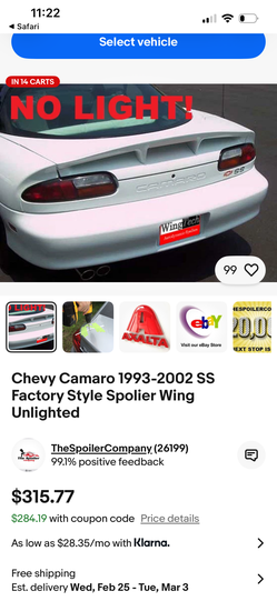 Chevy Camaro 1(contact info removed) SS Factory Style Spolier Wing Unlighted$200Pasadena, CA