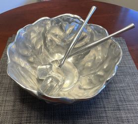 HaciendaReal Large Pewter Cabbage Leaf Salad Bowl With Utensils $25Kirkland, WA