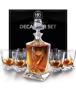Hydro Gizmos Whiskey Decanter Set for Men with 4 Drinking Glasses for Cognac, Bourbon, Rum, Scotch, Liquor Crystal Clear Decanter Sets $40Phoenix, AZ