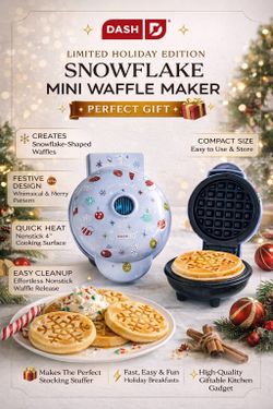 Dash Snowflake Mini Waffle Maker 4” Nonstick Holiday Edition New 350W Light Blue$48Westminster, CO
