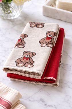 Rachel Ashwell Teddy Bear Kitchen Towels Set 3 Cotton Red Cream Reversible New$49Westminster, CO
