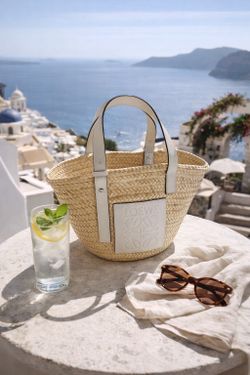 LOEWE Basket Bag Medium Raffia Palm Leaf Leather White Anagram Spain Design New$1,376Westminster, CO
