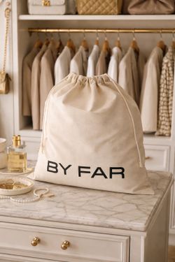 BY FAR Dust Bag Large Canvas Drawstring Storage Pouch Beige Logo New $49Westminster, CO