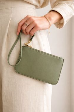 Sage Green Leather Wristlet Pouch Minimalist Clutch Gold Zip New Designer Bag$55Westminster, CO