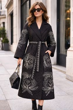Eddy Quilted Cotton Embroidered Wrap Coat Robe Jacket Black Belted Size M New $444Westminster, CO