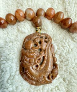 Natural Brown Jade Dragon Pendant Grade A Carved Handmade with Beads Cord $550Santa Clara, CA