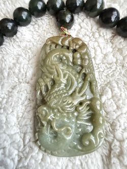 Natural Green Jade Dragon Pendant Grade A Carved Handmade with Beads Cord $550Sunnyvale, CA