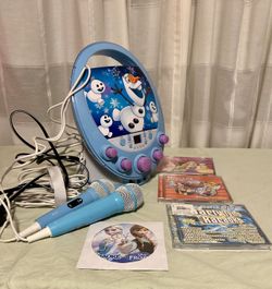 *Disney Frozen Portable Karaoke Machine & CD Player - Home Disco Party Light- 4 CDโs๐ฟ & 2 Microphones๐ค.$45Lynnwood, WA