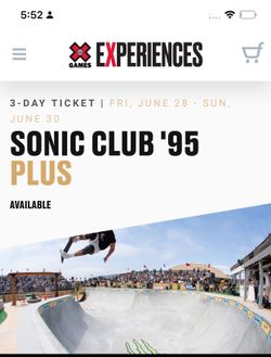 2024 X Games Ventura SONIC club ‘95 Plus 3 Day Tickets$280Ontario, CA