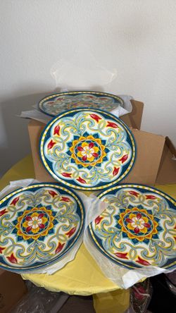 Princess House Limited Edition Colorful Mediterranean Co Style Ceramic Plates (Set) stylish tablescape with vibrant Sonesta dinnerware Platos de cerám$49Anaheim, CA