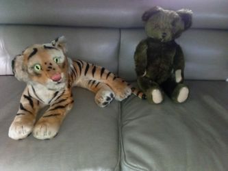 Vintage 1950s Steiff Mohair Tiger: Large Lying Plush Toy, Germany, 1940s Mo Bear Jointed Perfect Condition $40Irvine, CA
