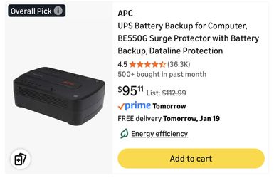 $60 APC UPS Battery Backup for Computer, BE550G Surge Protector with Battery Backup, Dataline Protection$60Miami, FL