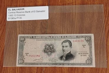 1983 El Salvador 10 Colones Bill Banknote Currency $40Glendale, CA