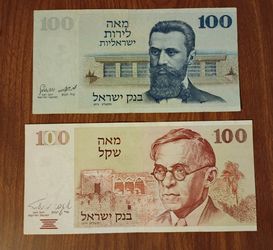 Israel Israeli Vintage Theodor Herzl 1960's And 70's Bills Banknotes Currency $50Glendale, CA