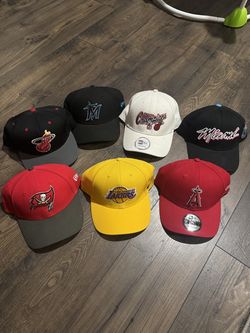 Bundle Of Adjustable Hats x6 Los Angeles Lakers hat Anaheim Angels hat Miami Heat hat x2 Miami Marlins Hat Tampa Bay Bucs hat$30Jurupa Valley, CA