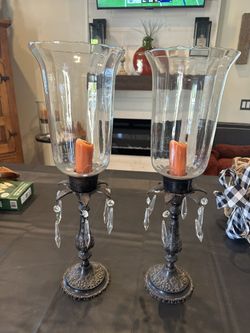 RH Large Glass, Metal And Crystal Hurticane Candleholders - Set Of 2$50Laguna Niguel, CA