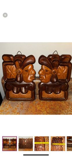 Set of 2 Warrior Head Totem Hand-carved Wood Wall Plaques Mayan Koko Warrior$58Miami, FL