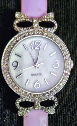 ladies women's mother of pearl face watch with rhinestones pink watch band and a new battery $5$5Santa Fe Springs, CA