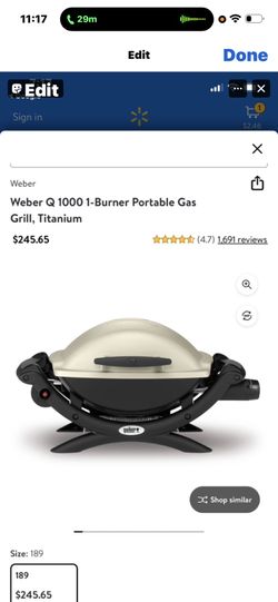 Weber 319 Q 1000 1-Burner Portable Grill in Titanium$200Riverside, CA