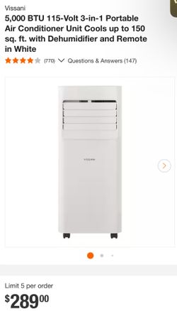 5,000 BTU 115-Volt 3-in-1 Portable Air Conditioner Unit Cools up to 150 sq. ft. with Dehumidifier and Remote in White$220Portland, OR