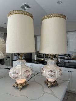 Vintage Carl Falkenstein Hollywood Regency Mid Century Pearlescent Glass Table Lamps❤️ With Shades Glass Crystals Excellent Condition Features Thre$500Brentwood, CA