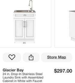 Glacier Bay 24 in. Drop-In Stainless Steel Laundry Sink with Assembled Cabinet in White with Faucet$199Mesa, AZ