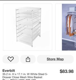 Everbilt 35.2 in. H x 17.1 in. W White Steel 5-Drawer Close Mesh Wire Basket$49Mesa, AZ
