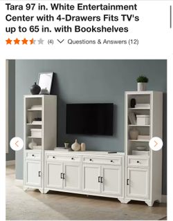 CROSLEY FURNITURE (Brand Rating: 4.2/5) Tara 97 in. White Entertainment Center with 4-Drawers Fits TV's up to 65 in. with Bookshelves$645Mesa, AZ