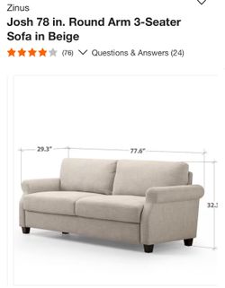 Josh 78 in. Round Arm 3-Seater Sofa in Beige 食文食大 (76) V Questions$220Gilbert, AZ