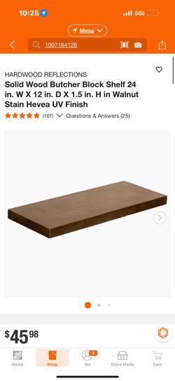 Solid Wood Butcher Block Shelf 24 in. W X 12 in. D X 1.5 in. H in Walnut Stain Hevea UV Finish$22Mesa, AZ