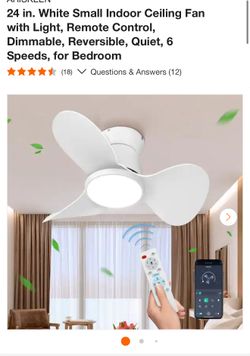 24 in. White Small Indoor Ceiling Fan with Light, Remote Control, Dimmable, Reversible, Quiet, 6 Speeds, for Bedroom$50Mesa, AZ