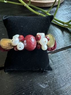 Red and gold beaded bracelet with pearls and gold leaf accents$30Phoenix, AZ